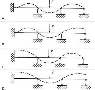 单选题 图示连续梁,变形示意正确的是( )。