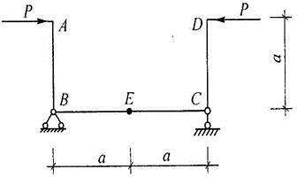 图示结构中,当A、D点同时作外力P时,下述对E点变形特征的描述正确的是( )。