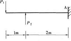 为了不使图示悬臂梁A点产生弯矩,荷载p1与p2之比,应为( )。