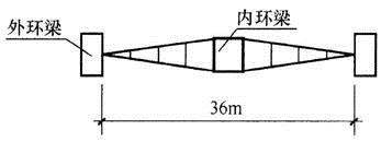 图所示为车辐式索桁架,在重力荷载作用下,下列关于内、外环梁受力情况的描述何项正确?( )