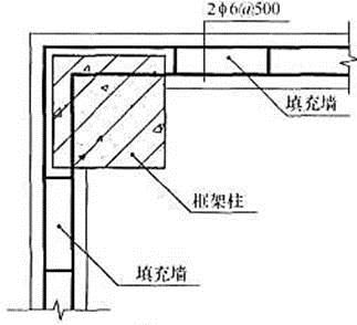 单选题 下列框架柱与填充墙连接图中,构造做法错误的是( )。
