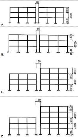 单选题 图示钢筋混凝土框架结构在8度设防时,设置防震缝的最小宽度的限值,正确的是( )。