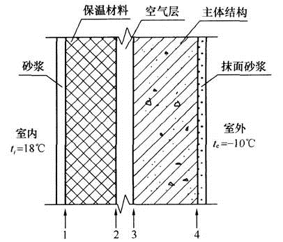 墙体构造如图所示,为防止保温层受潮,隔汽层设置的正确位置应为( )。