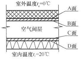 为了增大热阻,决定在图所示构造中贴两层铝箔,下列哪种方法最有效?( )