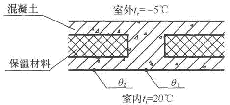 外墙某局部如图所示,比较内表面温度θ1和θ2,下列哪一个答案正确?( )