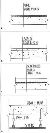 单选题 下面4种楼板构造中混凝土楼板厚度相同,哪种构造隔绝撞击声的能力最差?( )
