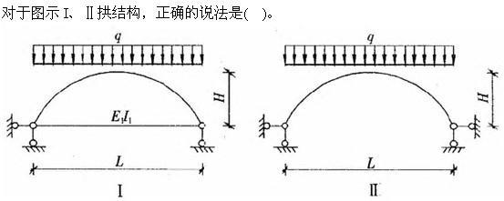 D 两者受力完全不同,且Ⅰ中拱轴力小于Ⅱ中的拱轴力