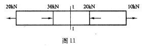 如图11所示轴向拉压杆,1-1截面的轴力N的数值为( )。