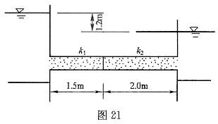 上、下游水箱中间有一连接管,水箱水位恒定,见图21。连接管内充填两种不同的砂层(k1=0.003m/s,k2=0.001