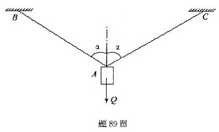 物体重力的大小为Q,用细绳BA、CA悬挂(如图示),α=60°,若将BA绳剪断,则该瞬时CA绳的张力为( )。