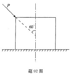 物块重力的大小为5kN,与水平间的摩擦角为φm=35°。今用与铅垂线成60°角的力P推动物块(如图示),若P=5kN,则