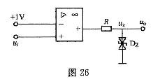 单选题 如图26所示电路为电压比较器,它的输入输出传输特性应该是图( )。