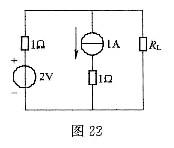 如图22所示电路中,当负载RL获得最大功率时,RL=( )。