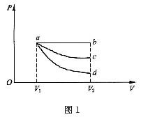 如图1所示,一定量的理想气体从体积V膨胀到V2,经历的过程分别为:a→b为等压过程,a→c为等温过程,a→d为绝热过程,