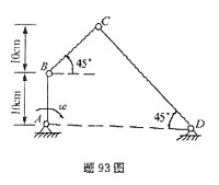 平面四连杆机构ABCD如图所示,如杆AB以等角速度ω=1rad/s绕A轴顺时针向转动,则CD杆角速度ωCD的大小和方向为