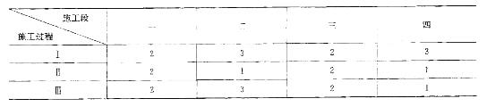 某工程按下表要求组织流水施工,相应流水步距KⅠ-Ⅱ及KⅡ-Ⅲ分别应为多少天?