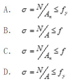 单选题 一截面面积为A、净截面面积为An的构件,在拉力N作用下的强度计算公式为( )。