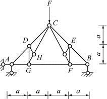 如图所示的桁架中,GF和DG杆的轴力分别为( )。