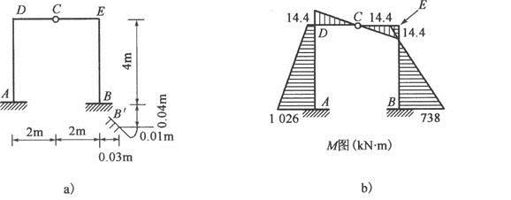 单选题 图所示结构,各杆,当支座B发生图示的移动时,结点E的水平位移为( )。