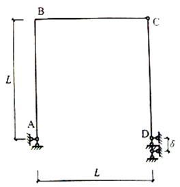 单选题 图示刚架,EI为常数,忽略轴向变形。当D支座发生支座沉降时,B点转角为( )。