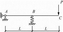 单选题 图示结构,EI为常数。结点B处弹性支撑刚度系数k=3EI/L3,C点的竖向位移为( )。