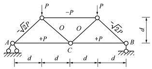 单选题 设各杆的EA值相同,在图所示的桁架中,节点C的竖向位移为( )。