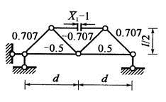 单选题 图所示为超静定桁架的基本结构及多余为知力X=1作用下的各杆内力,EA为常数,则为( )。