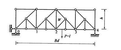 图所示桁架W杆的影响线纵标不为零的区段为( )。