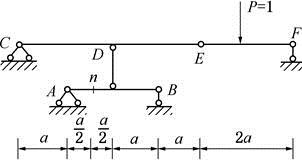 图中,设单位竖向荷载在CDEF上移动时, n截面的弯矩影响线在E的竖标值为( )。