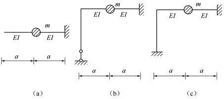 如图所示三个结构的自振频率分别为ωa、ωb、ωc,其之间关系为( )。