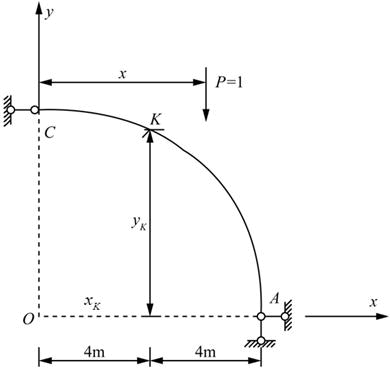 单选题 图示圆弧曲梁K截面弯矩MK(外侧受拉为正)影响线C点竖标为( )。