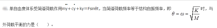 图示单自由度体系受简谐荷载作用,当简谐荷载频率等于结构自振频率的两倍,则位移的动力放大系数为( )。