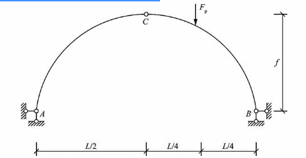图示三铰接拱,若高跨比f/L=1/2,则水平推力FH为( )。