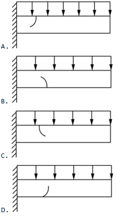 单选题 悬臂梁在图示荷载作用下产生的弯剪裂缝为( )。