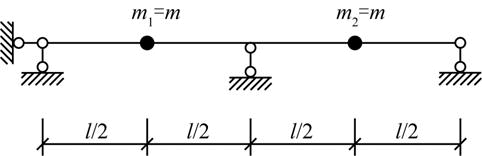 图示体系(各杆抗弯刚度EI相同)的第二主振型(设质点位移以向下为正)Y12/Y22为( )。