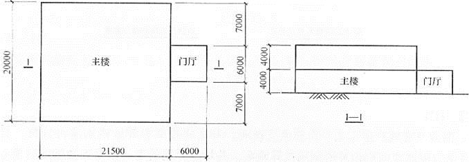新疆乌鲁木齐市内的某二层办公楼,附带一层高的入口门厅,其平面和剖面如题4图所示。门厅屋面采用轻质屋盖结构。试问,门厅屋面