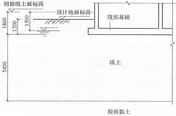 不定项选择题 某多层办公楼拟建造于大面积填土地基上,采用钢筋混凝土筏形基础;填土厚度7.2m,采用强夯地基处理措施。建筑基础、土层分布及地下水位等如题6~8图所示。该工程抗震设防烈度为7度,设计基本地震加速度为0.15g,设计地震分组为第三组。