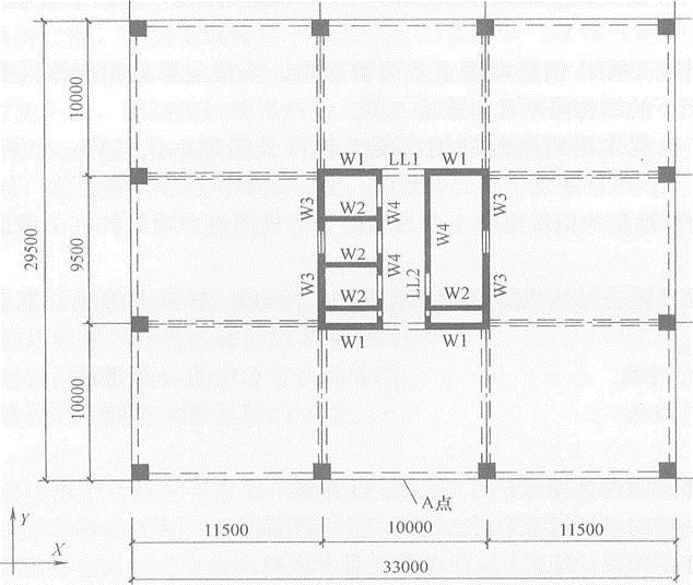 不定项选择题 某31层普通办公楼,采用现浇钢筋混凝土框架—核心筒结构,标准层平面如题19~22图所示,首层层高6m,其余
