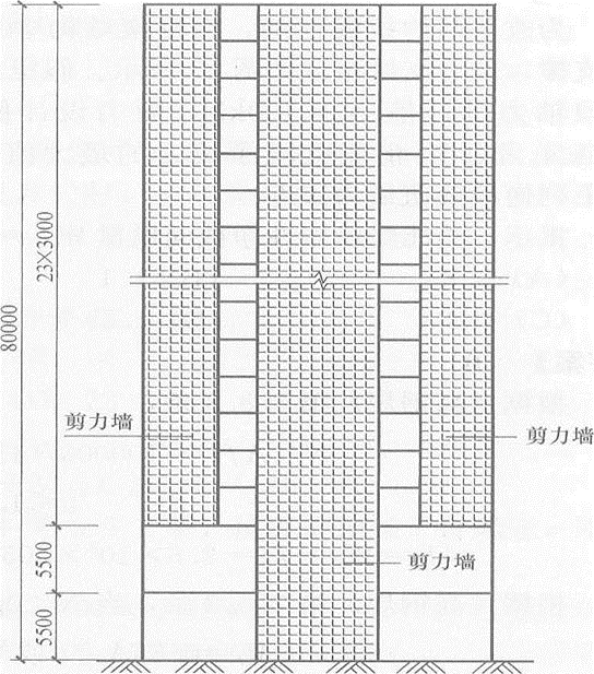 不定项选择题 某25层部分框支剪力墙结构住宅,剖面如题28~30图所示,首层及二层层高5.5m,其余各层层高3m,房屋高