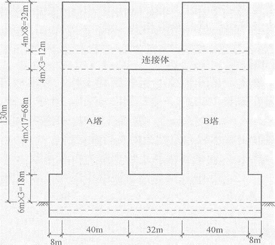 不定项选择题 某现浇钢筋混凝土双塔连体结构,塔楼为办公楼,A塔和B塔地上31层,房屋高度130m,21~23层连体,连体