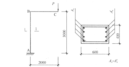 形普通钢筋混凝土构件,安全等级为二级,计算简图如图所示,梁、柱截面均为400mm×600mm,混凝土强度等级为C40,钢筋采用HRB400,as=a s′=50mm,ξb=0.518。假定,不考虑地震设计状况,自重忽略不计。集中荷载设计值P=224kN,柱AB采用对称配筋。试问,按正截面承载力计算得出的柱AB单边受力钢筋As(mm2)与下列何项数值最为接近?