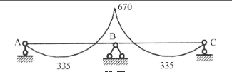 假定,不考虑活荷载的不利布置,WL1(2)由竖向荷载控制设计且该工况下经弹性内力分析得到的标准组合下支座及跨度中点弯矩如图所示,该梁按考虑塑形内力重分布分析方法设计。试问,当支座弯矩调幅幅度为15%时,标准组合下梁跨度中点的弯矩(kN·m),与下列何项数值最为接近?