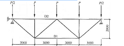 不定项选择题 某露天环境的木屋架,采用云南松TC13A制作,计算简图如图所示,其空间稳定性满足《木结构设计标准》(GB 50005—2017)的规定。P为檩条(与屋架上弦锚固)传至屋架的节点荷载。设计使用年限为5年,结构重要性系数γ0=1.0。