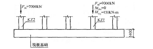 不定项选择题 某安全等级为二级的高层建筑采用钢筋混凝土框架结构。柱截面尺寸900mm×900mm,如图所示。柱采用平板式筏基,板厚1.4m,均匀地基。荷载效应由永久荷载控制。