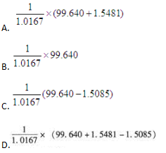 单选题 TF1509期货价格为97.525,若对应的最便宜可交割国债价格为99.640,转换因子为1.0167。至TF1509合约最后交割日,该国债资金占用成本为1.5481,持有期间利息收入为1.5085,则TF1509的理论价格为( )。