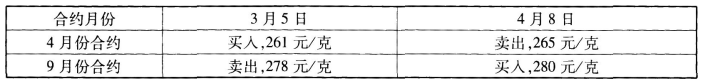 某套利者在黄金期货市场进行黄金期货套利,操作过程如下表所示: