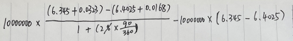 不定项选择题 假设某公司与某银行签订一份1合约汇率为6.345000万美元的1×4买入远期外汇综合协议(SAFE),合约汇率为 6.345,合约约定的汇差即CS为0.0323,而到期日的基准汇率为6.4025,结算汇差即SS为0.0168。利率水平为2%,则以汇率协议(ERA)的结算方式下,银行支付( )。