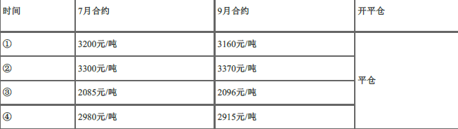 5月10日,某套利者买入7月份豆粕期货合约,价格为3100元/吨,同时卖出9月份豆粕期货合约,价格为3160元/吨。6月