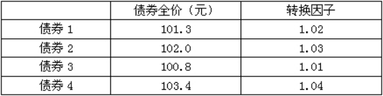 当前国债期货价格为99元,假定对应的四只可交割券的信息如表5所示,其中最便宜的可交割券是()。 表5债券信息表