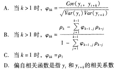 下列关于偏自相关函数φkk,说法正确的是( )。